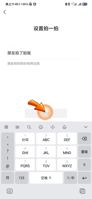 4、设置完拍一拍内容后,点击页面下方的“完成”选项即可。