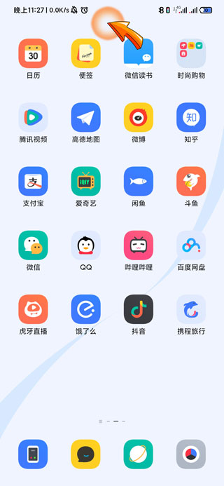 1、手机打开设置需要打开手机的桌面,然后将手指放置空白区域向下滑动。