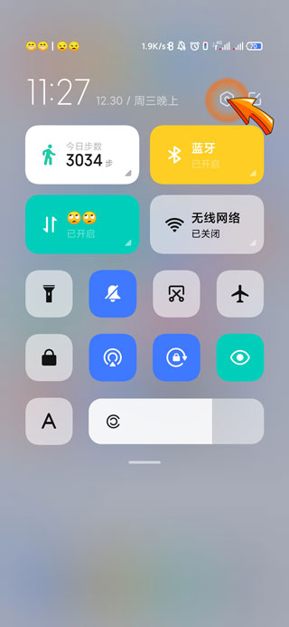 2、此时页面会出现状态栏页面,点击右上角的“设置”齿轮图标。