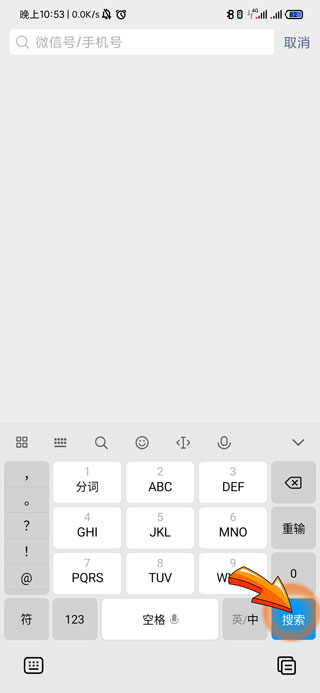 4、输入朋友的微信号后,点击页面右下角的“搜索”选项即可。