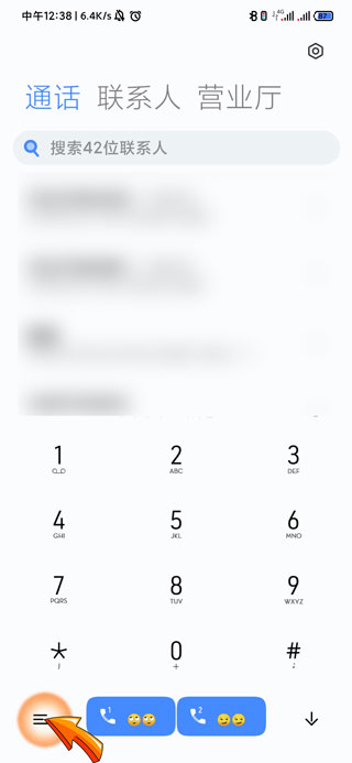 1、手机设置电话打不进来但可以上网首先需要打开拨号窗口,点击页面左下角的“三横”符号。