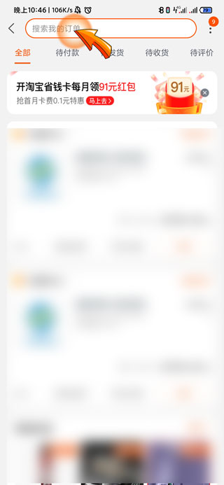 3、进入页面后即可查看最近订单,也可以点击页面上方的“搜索栏”进行搜索查询。