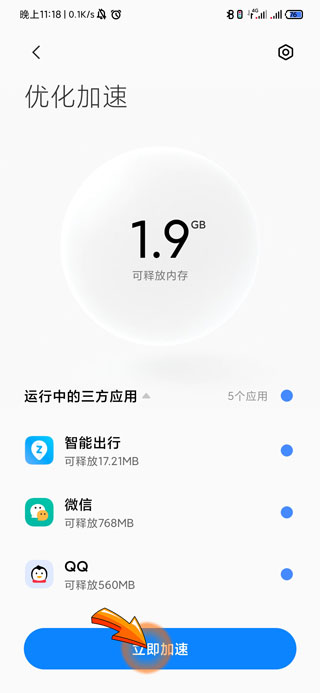 3、然后点击页面下方的“立即加速”选项,即可清理手机正在运行的后台。