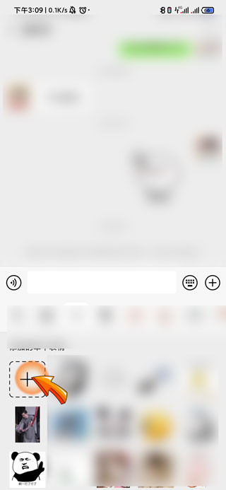 4、此时页面会显示所有添加的表情图片,再次点击右上方的“加号”图标即可上传表情包。