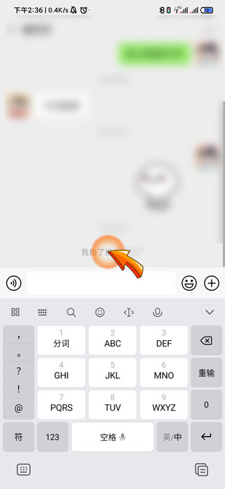 2、进入和朋友的聊天页面后,长按“我拍了拍xxx”选项。