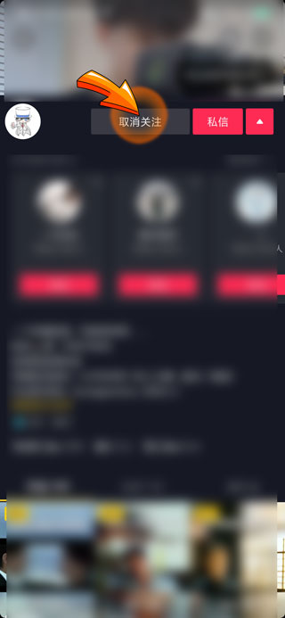 3、同时也可以再次点击此位置的“取消关注”选项,即可取消对对方的关注。