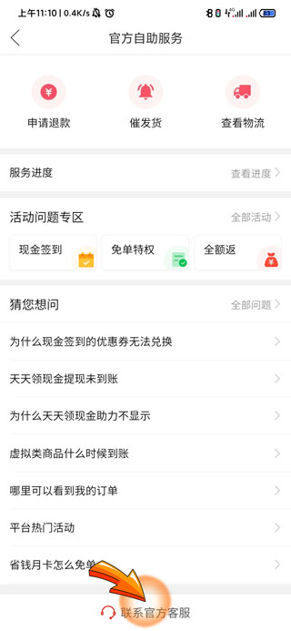 3、进入页面后,点击最底部的“联系官方客服”选项。