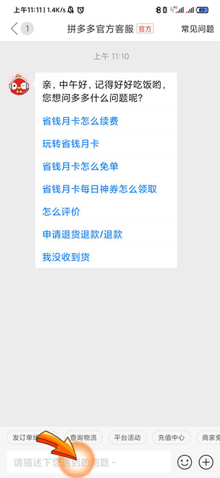 4、最后在“输入框”中输入相关问题内容,等待客服答复和处理。