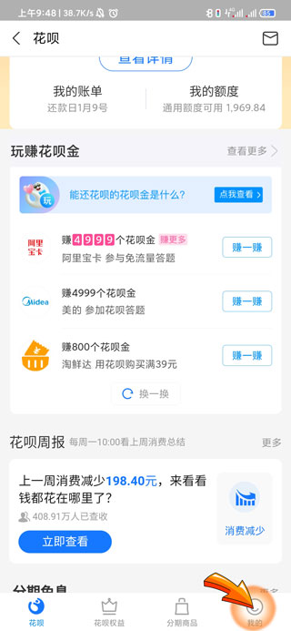 3、进入花呗页面后点击页面右下方的“我的”图标。