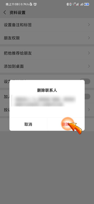 4、此时页面会弹出一个窗口,最后点击窗口中的“删除”选项即可删除好友。