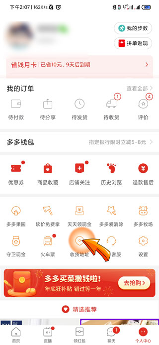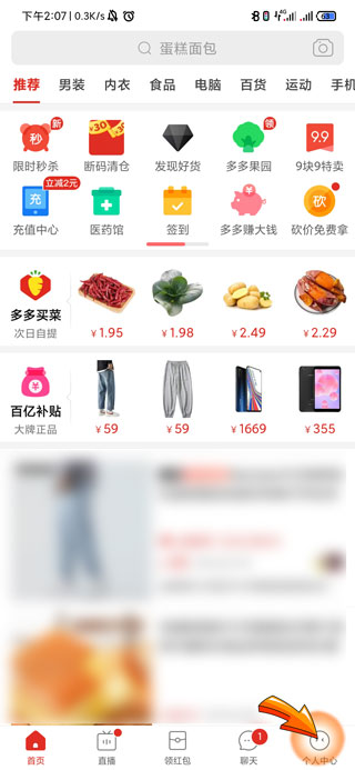 1、拼多多修改收货地址和电话首先需用打开拼多多APP,点击页面右下方的“个人中心”选项。