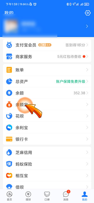 2、然后点击我的页面中的“余额宝”选项。
