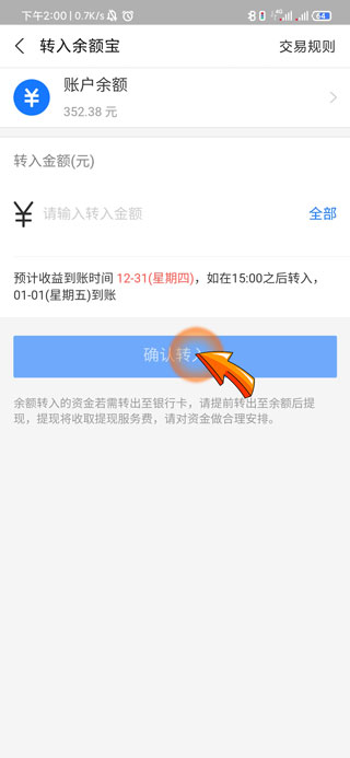 4、最后输入金额点击下方的“确认转入”选项后,即可使用余额宝进行支付。