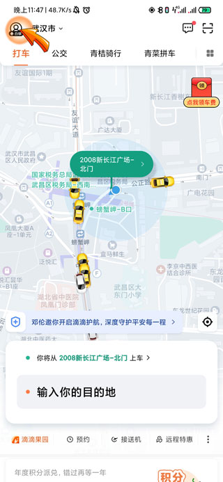 1、滴滴免密支付取消首先需要打开滴滴出行APP,点击首页左上方的“人像”图标。
