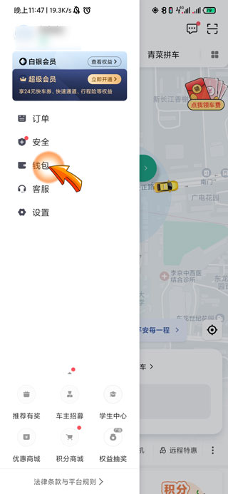 2、此时页面左侧会弹出一个窗口,点击其中的“钱包”选项。