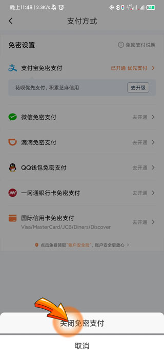滴滴免密支付取消步骤