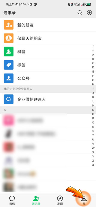 1、微信迁移首先需要打开微信APP,点击页面下方的“我”的图标。