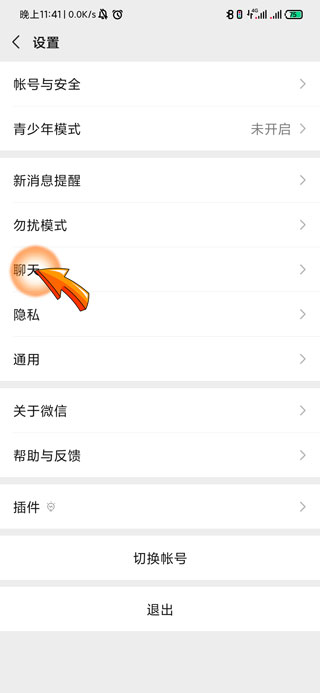 3、在设置页面中找到并点击“聊天”选项。
