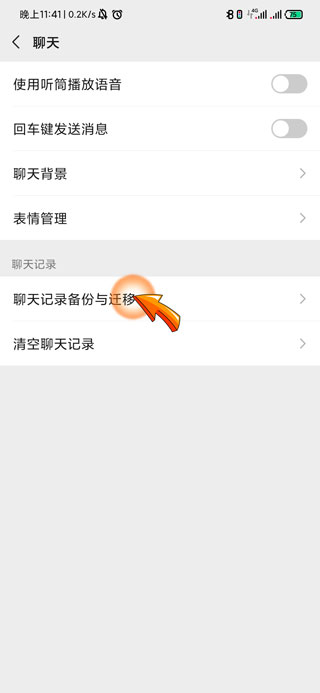 4、再点击“聊天记录备份与迁移”选项。