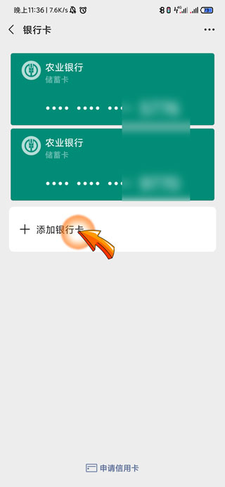 5、最后点击银行卡图标下方的“添加银行卡”选项,根据系统步骤完成银行卡绑定。