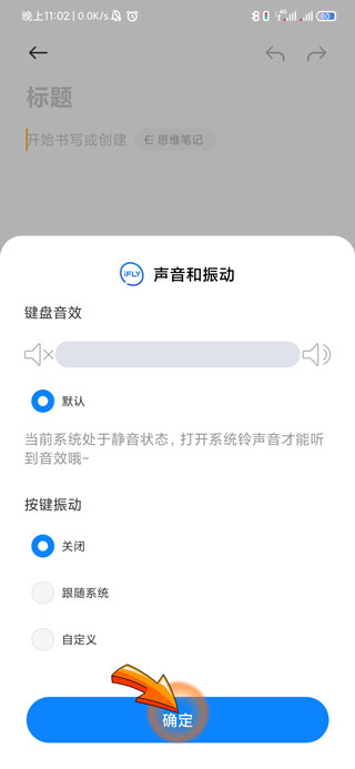 手机关闭打字声音需要打开打字框,点击左上角的“四口”图标,然后上滑页面找到并点击“声音和震动”选项,将“键盘音效”声音关闭,最后点击页面下方的“确定”选项即可。