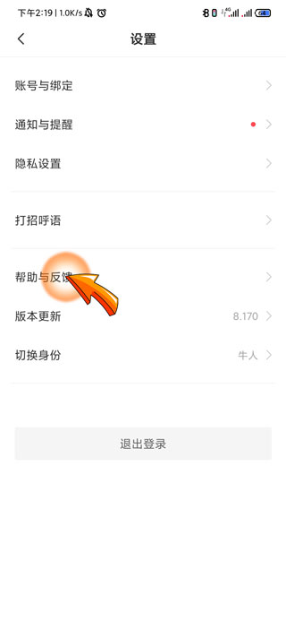 3、进入设置页面后,点击“帮助与反馈”选项。