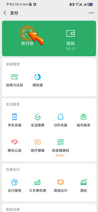 3、最后点击打开“收付款”图标,进入后即可设置开启或者关闭免密支付。