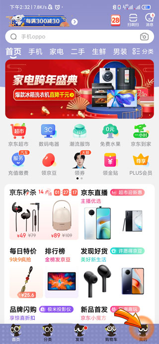 1、京东超过7天退货首先需要打开京东APP,点击首页右下角的“我的”图标。