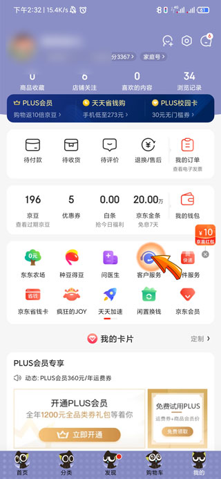 2、然后在我的页面中找到并点击“客户服务”选项。