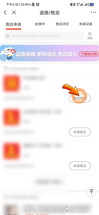 4、最后选择需要退货的商品订单,点击其右下方的“申请售后”选项,根据提示完成退货。