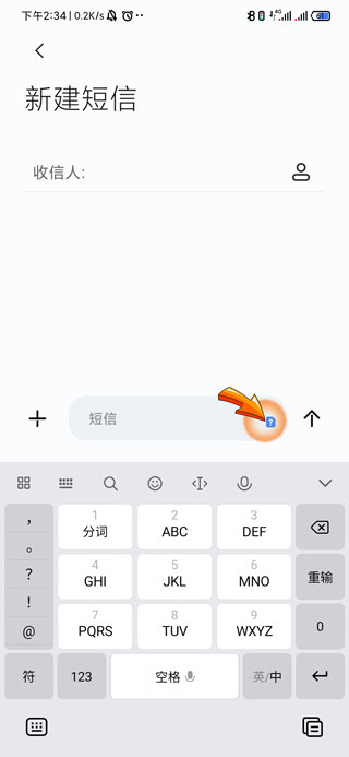 2、进入到编发短信页面后,点击编辑短信框右侧的“蓝色”图标。