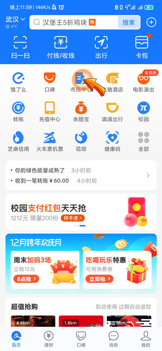 1、支付宝公积金提取首先需要打开支付宝APP,点击页面中的“市民中心”图标。