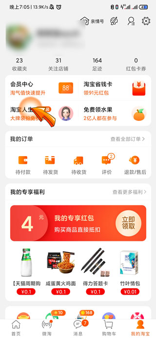 2、然后在我的淘宝页面中找到并点击“淘宝人生”选项。