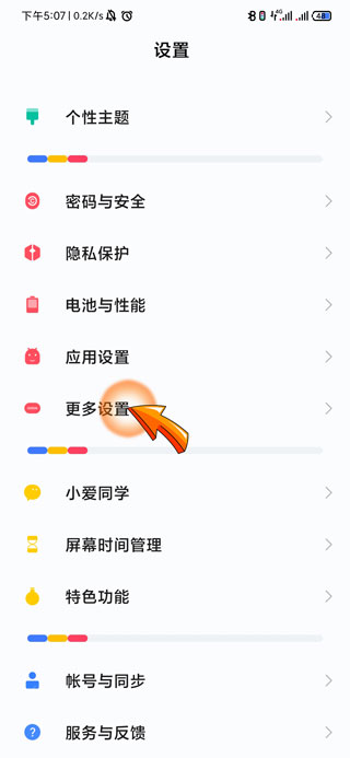 2、进入设置页面后上滑找到并点击“更多设置”选项。