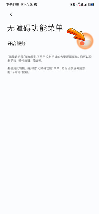 5、最后将“开启服务”右侧的开关打开,小米无障碍权限功能就同时开启了。