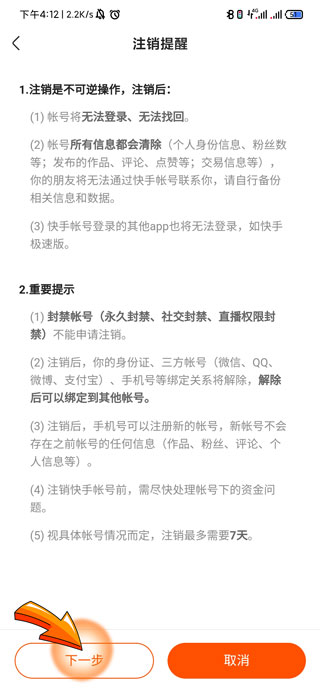 快手账号注销步骤