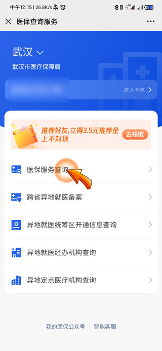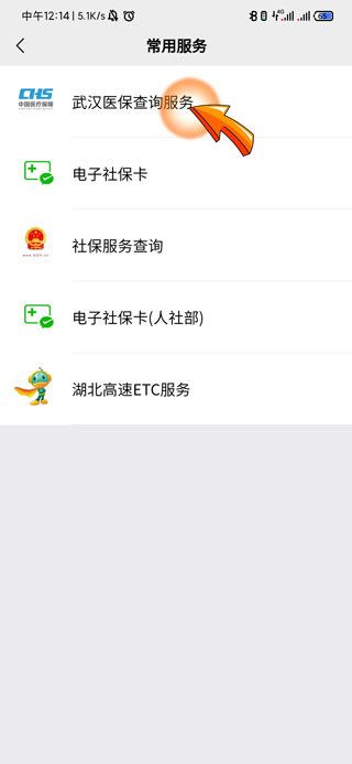 5、再点击页面顶部的“武汉医保查询服务”选项。