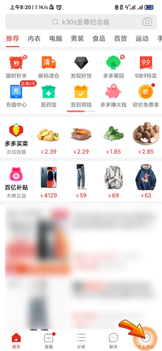 1、多多钱包开通首先需要打开拼多多APP,进入首页后点击右下角“个人中心”图标。