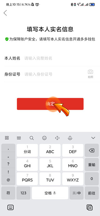 4、填写好自己的相关信息后,点击下方的“确认”选项,多多钱包就开通完成了。