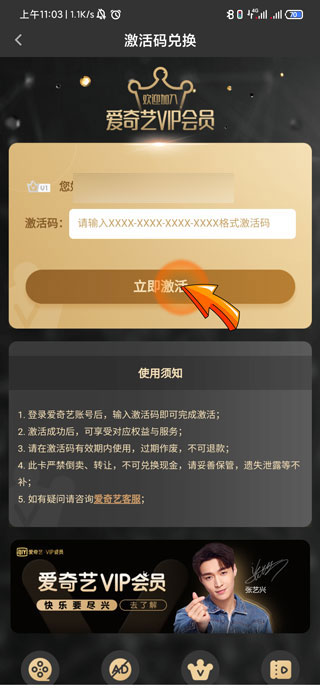 爱奇艺会员卡密兑换需要打开爱奇艺APP,点击右下角“我的”图标,然后点击“续费”选项,再点击页面右上角的“三横”符号,点击弹出窗口中的“激活码兑换”图标,最后输入激活码后点击“立即激活”即可。