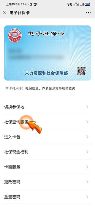 5、在社保页面中点击最底部的“电子社保卡(人社部)”选项。