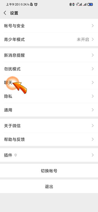 3、然后点击设置页面中的“聊天”选项。