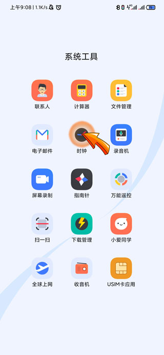 1、设置手机闹钟静音首先需要在桌面上找到并点击“时钟”图标。