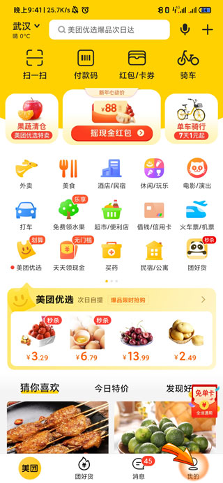 1、解绑美团支付银行卡首先需要打开美团APP,点击页面右下角“我的”图标。
