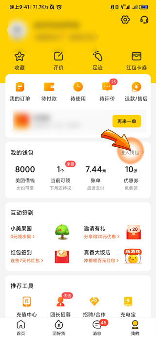 2、然后点击我的钱包右侧的“进入钱包”选项。