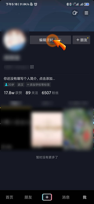 2、进入“我”的页面后,点击头像右侧的“编辑资料”选项。