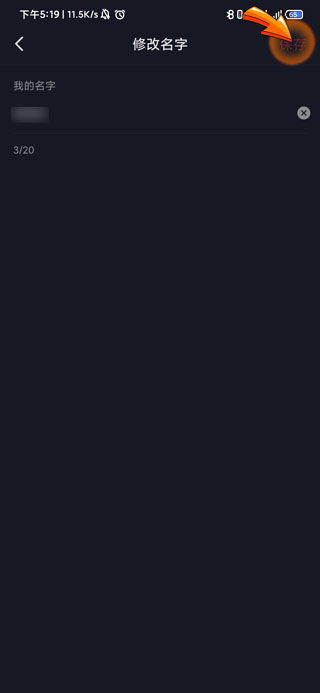 5、修改完成后点击右上角的“保存”选项,抖音名称就修改完成了。