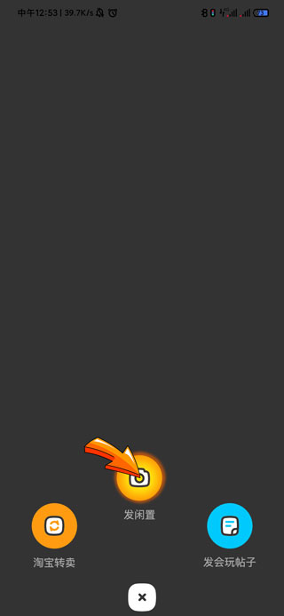 2、然后在出现的页面中点击中间的“发闲置”图标。