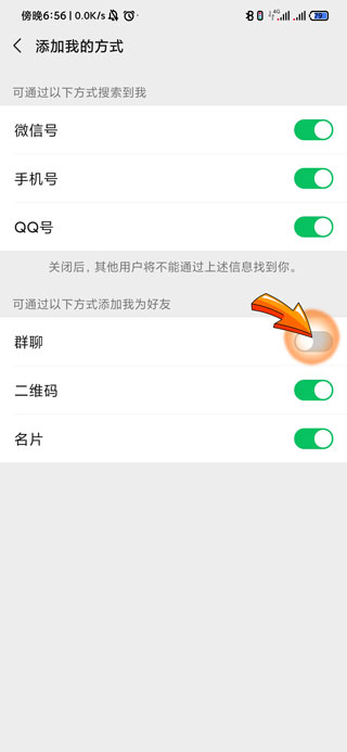 5、再点击下方的“添加我的方式”选项,进入后找到群聊选项。