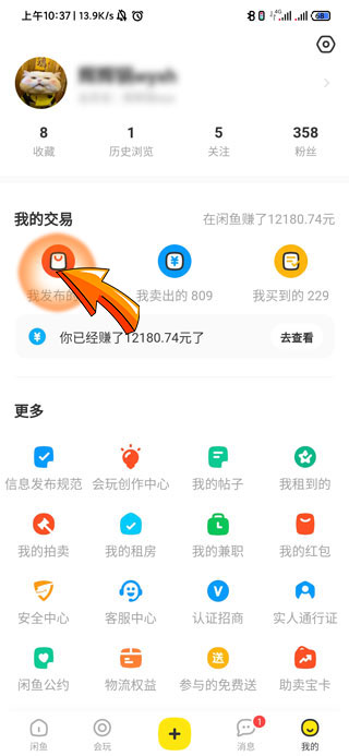 2、在“我的”页面中找到并点击“我发布的”的选项,查看自己已发布的所有商品。